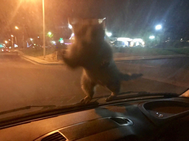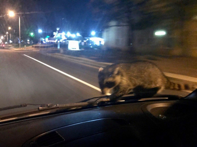 Як зазначають поліцейські, єнот-нахаба стрибнув на лобове скло їхнього авто та не хотів злазити, коли вони їхали на виклик, пов'язаний з важким пораненням.