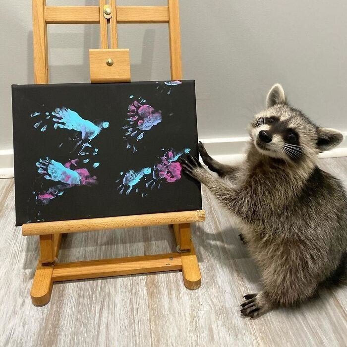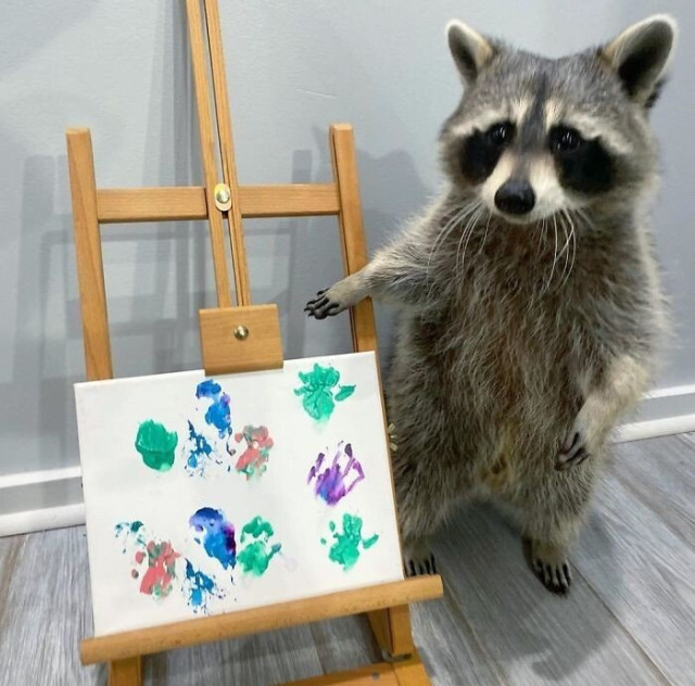 Невідомо, чи відчувають самі єноти тягу до мистецтва, але судячи з щасливих мордочок – їм безумовно подобається процес! Користувачі мережі зачаровані роботами єнотиків, а багато порівняли їх з полотнами великого Джексона Поллока.