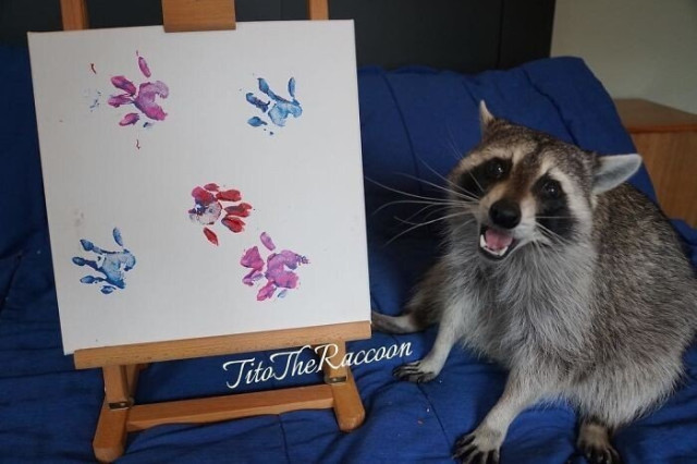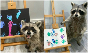 Три врятованих єноти з США – зірки живопису! Своїми маленькими лапками ці пухнасті маестро створюють картини, які багато хто порівнює з роботами великого Джексона Поллока.