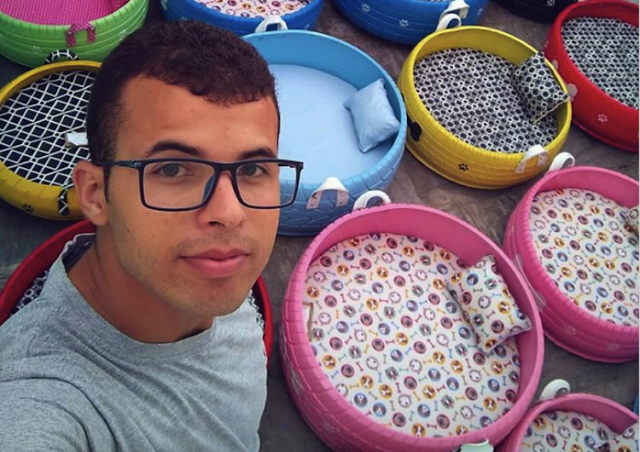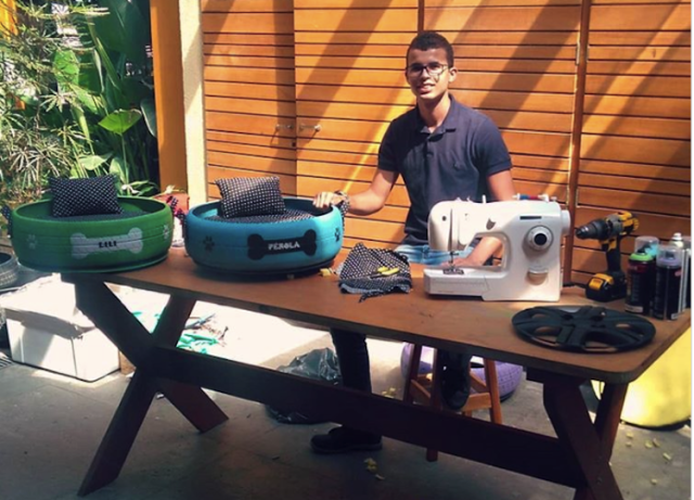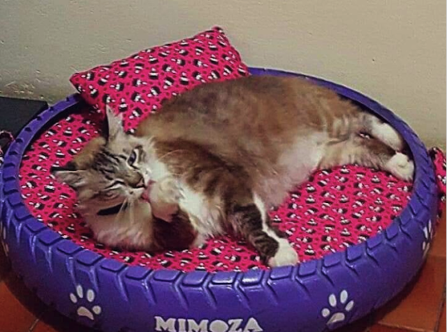 Він збирає використані шини від автомобілів та робить з них симпатичні ліжечка для кішок та собак.