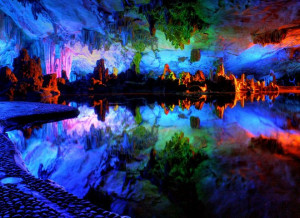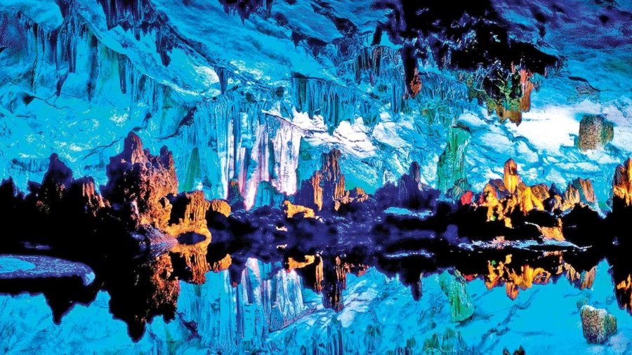 Довгі сталактити та сталагміти, відзеркалюючись у воді підземних джерел, створюють чудові картини. Китайці деяким з них дали спеціальні назви. Тут є й «Фруктова гора», «Недоторканий ліс», «Пагода дракона» й «Кришталевий замок короля драконів». До речі, перші туристи побували у Печері Очеретяної Флейти 1300 років тому.
