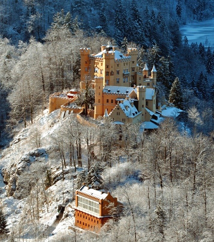 Замок Хоеншванґау розташований в південній Баварії трохи північніше кордону з Австрією. У перекладі з німецької «Schloß Hohenschwangau» звучить як «Високий лебединий край». Резиденція була побудована за наказом Максиміліана II Баварського. Тут ріс і виховувався його син Людвіг.