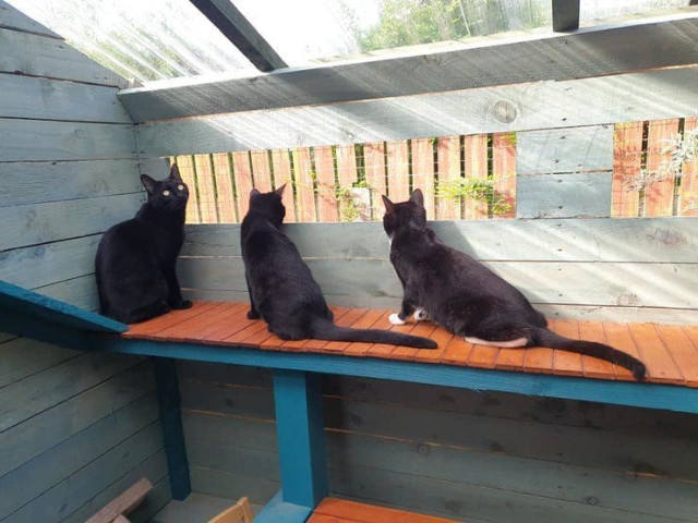 У розпорядженні котів - численні рівні з лабіринтами, сходами і лежанками, на яких тварини можуть приймати сонячні ванни.