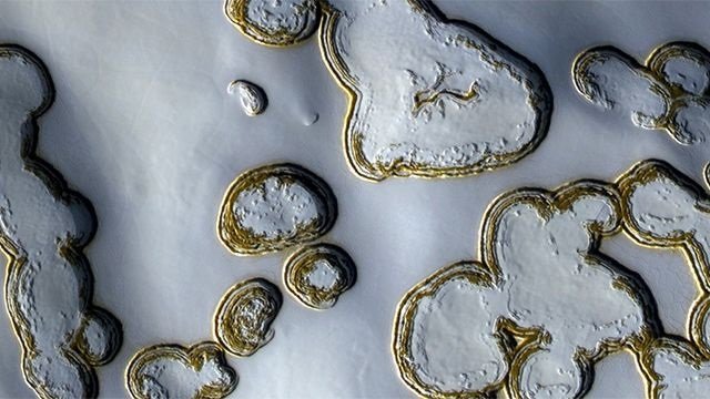 Повідомляється, що з настанням на Марсі "весни" сухий лід почне поступово тріскатися і випаровуватися. Через це обличчя планети знову зміниться. У той же час, на Південному полюсі Марса температура зберігається протягом усього року, через що "зима" там триває весь час.