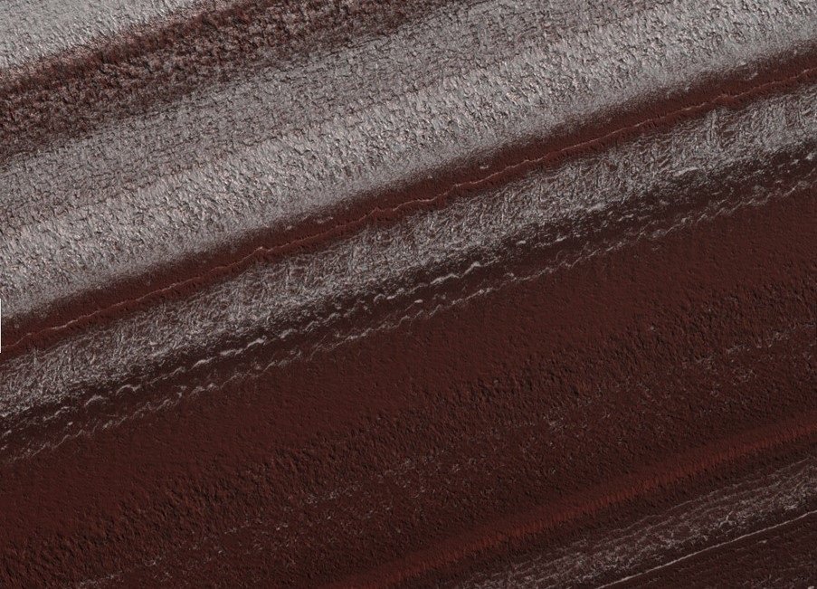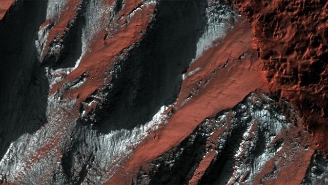 "Станція Mars Reconnaissance Orbiter завдяки своїм потужним камерам і спектрометрам зробила деталізовану зйомку зимових пейзажів на Червоній планеті", - відзначають фахівці NASA.