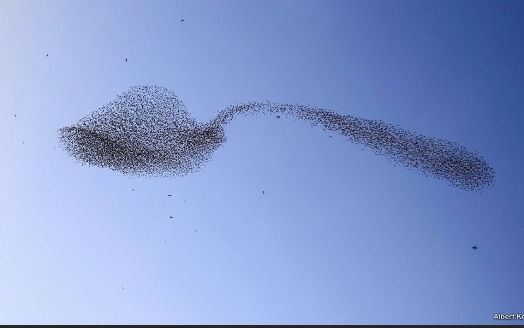 This is the phenomenal unique never again moment the Starlings over the Jordan Valley swooped into the shape of a bending spoon with sugar Captured by nature photographer Albert Keshet. 🥄 pic.twitter.com/YDZVRt2GdB