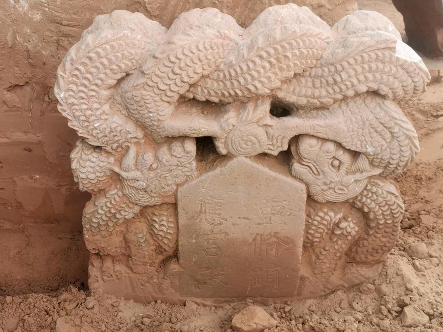 Археологи виявили на майданчику і кам’яну табличку із записами. Із записів випливає, що там раніше розташовувався храм під назвою Палац Сяньїн. Також було знайдено понад 30 оздоблених глиняних статуй.