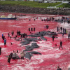 Фотографії з Фарерських островів показують, як море стало червоним від крові десятків чорних дельфінів, вбитих мешканцями островів під час підготовки до суворої зими.