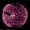 У сонячній короні виникли три корональних діри - області, де температура і щільність плазми може бути знижена в кілька десятків разів. Явище може привести до слабких змін у магнітному полі Землі