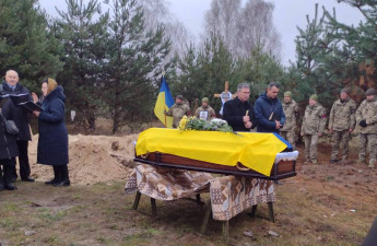 Прощання з Героєм відбулося біля рідного будинку в селі Ставки. Провести Захисника в останню путь прийшло багато людей: військові побратими, родина, друзі, односельці та небайдужі жителі громади.