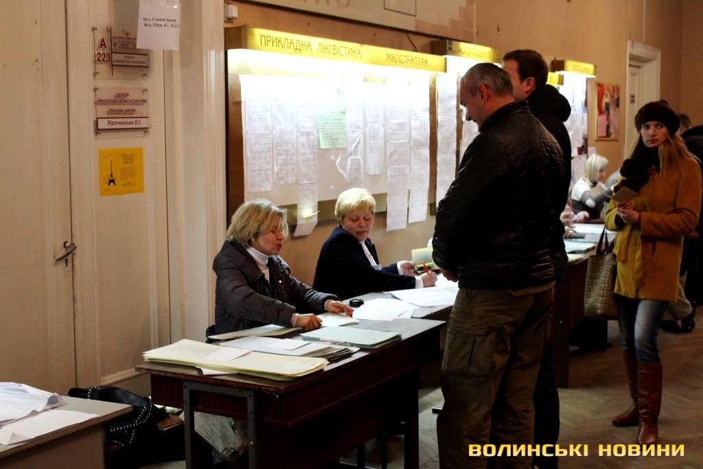 На одній із виборчих дільниць у самісінькому центрі Луцька за прозорістю підрахунку голосів спостерігають представники ОБСЄ.