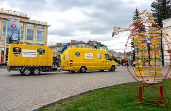 З Театрального майдану Луцька активісти волонтерського центру «Серце патріота» повезли солдатам домашні продукти, маскувальні сітки та інструменти