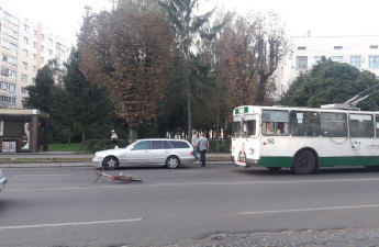 У Луцьку «Мерседес» збив велосипедиста, який вискочив з-за тролейбуса. Відео