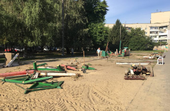 У Луцьку на Молоді демонтовують аварійний дитячий майданчик. Фото