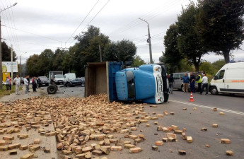 У Луцьку BMW на швидкості протаранив ЗІЛ, вантажівка перекинулася. Оновлено