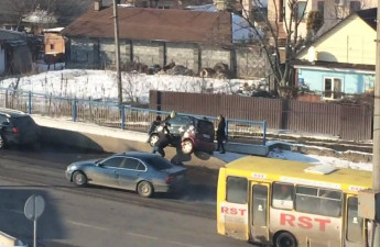 На відбійник мосту в Луцьку закинуло Smart – його знімали руками. Відео
