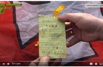 Бойовики опублікували відео, на якому видно речі загиблих бійців. Серед іншого – прапор ГО «Волинські патріоти», у який був загорнутий автоматний ріжок і записка з інформацією про трьох поранених