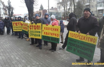 Представники трудового колективу Маневицького лісгоспу зібралися вчора, 14 грудня, біля приміщення Луцького міськрайонного суду на підтримку свого керівника Володимира Радіона, якому інкримінують розтрату державного майна. Прокуратура подала звернення про застосування запобіжного заходу щодо Володимира Радіона (арешт/домашній арешт/застава)