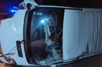 Нічна ДТП у Луцьку: бус протаранив електроопору, а потім перекинувся. Фото