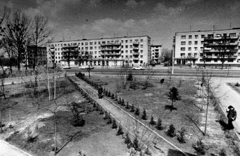 На чорно-білих світлинах показали подію 40-річної давності: у 1982 році заклали сквер біля адмінбудинку Десятого упрдору на вулиці Рівненській, 52б у Луцьку.