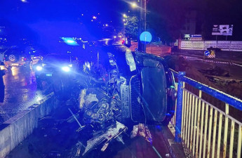 Водійка була нетверезою, а в машині була дитина. У Луцьку авто перекинулося на мосту. Фото