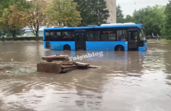 Гроза, град і річка посеред вулиці: недільна негода в Луцьку