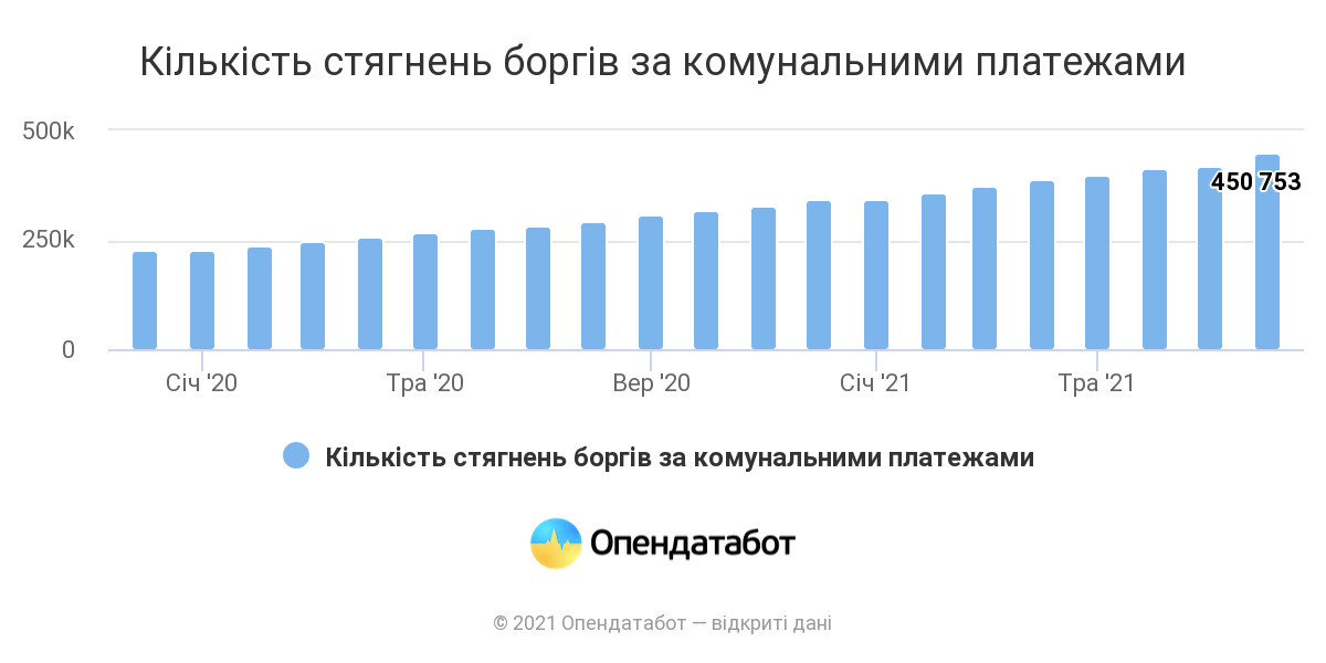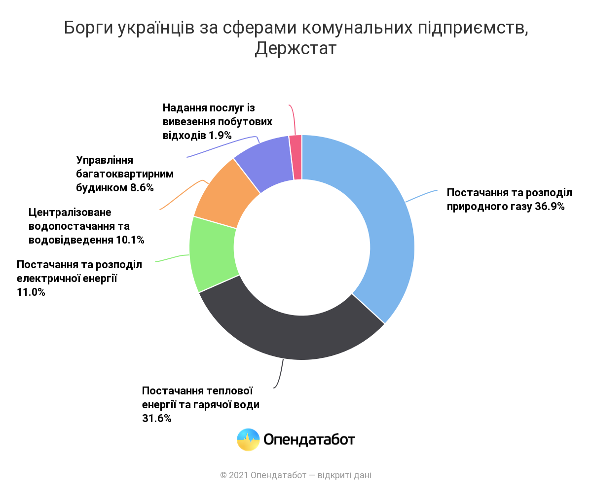 Станом на серпень 2021 року борги за комуналку сягнули 64,4 мільярда гривень, згідно з даними Держстату.