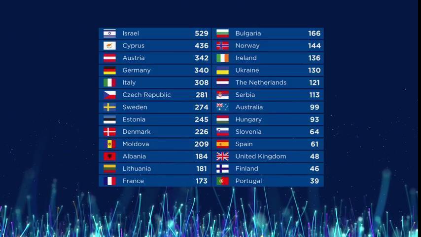 Друге місце зайняла конкурсантка з Кіпру Елені Фурейра з піснею «Fuego». У трійку лідерів увійшов і представник Австрії Сезар Сепмсон. Зазначимо, що представник від України Melovin зайняв 17 місце з 26 можливих.