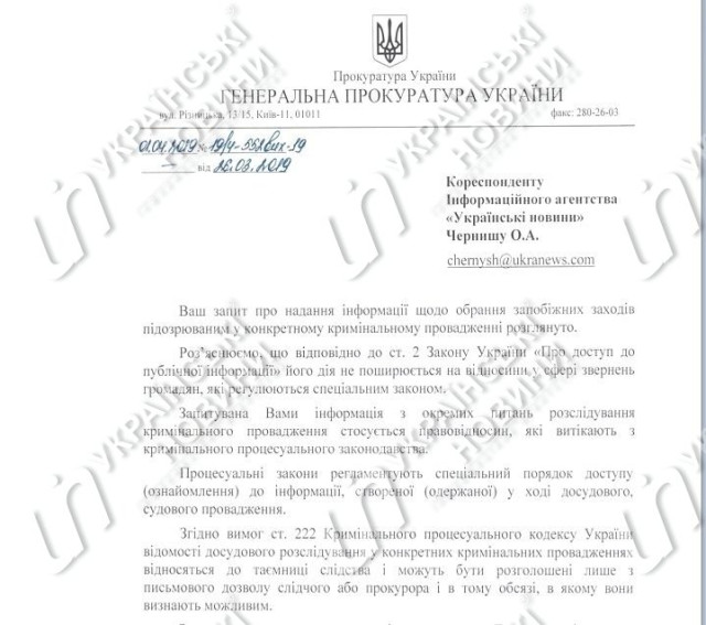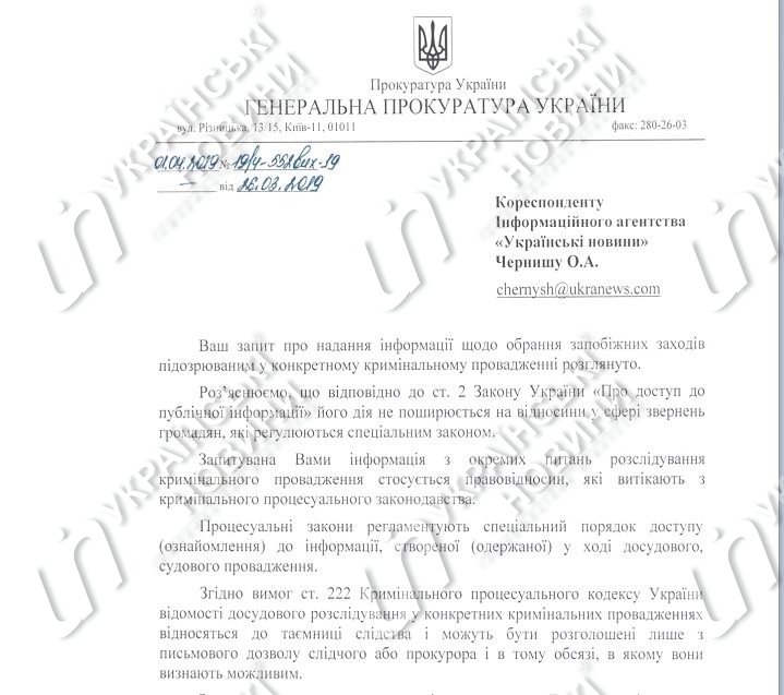 Про це повідомляють "Українські новини" з посиланням на відповідь Генеральної прокуратури.