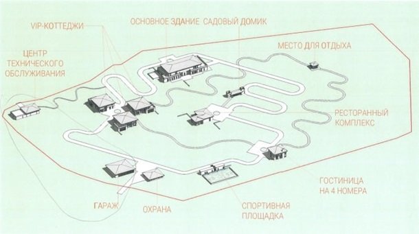 Зокрема, видання посилається на проєктні документи групи компаній «Краснодаргражданпроект», яка будує резиденцію. На плані будівництва є 12 об’єктів загальною площею 7 374 кв. м на ділянці площею понад 97 248 квадратів. Третину площі забудови займає об’єкт «головна будівля», проектований для господаря.