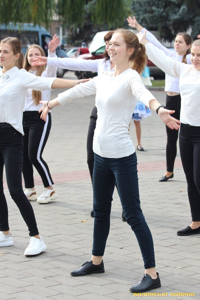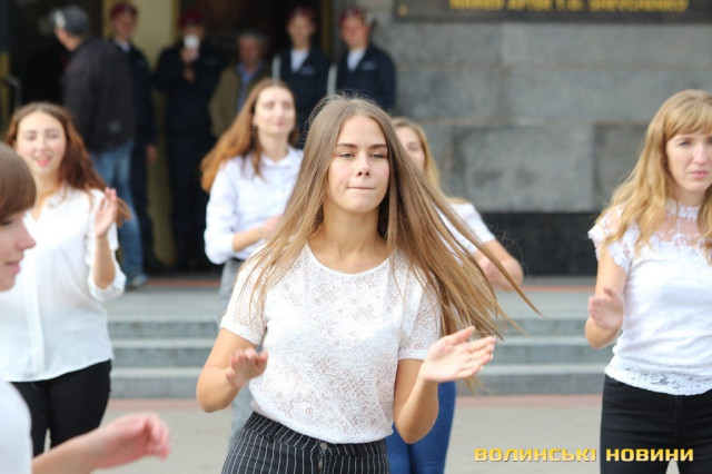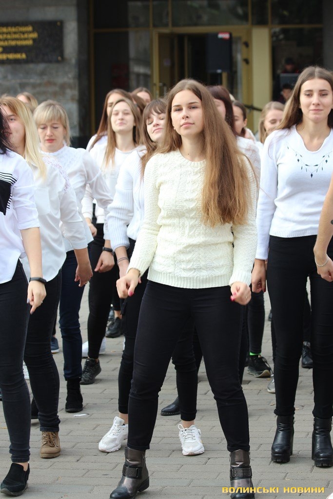 Участь у флешмобі взяли педагоги з усіх шкіл Луцька. Вікових обмежень не було.