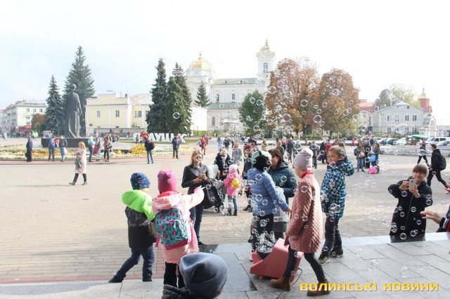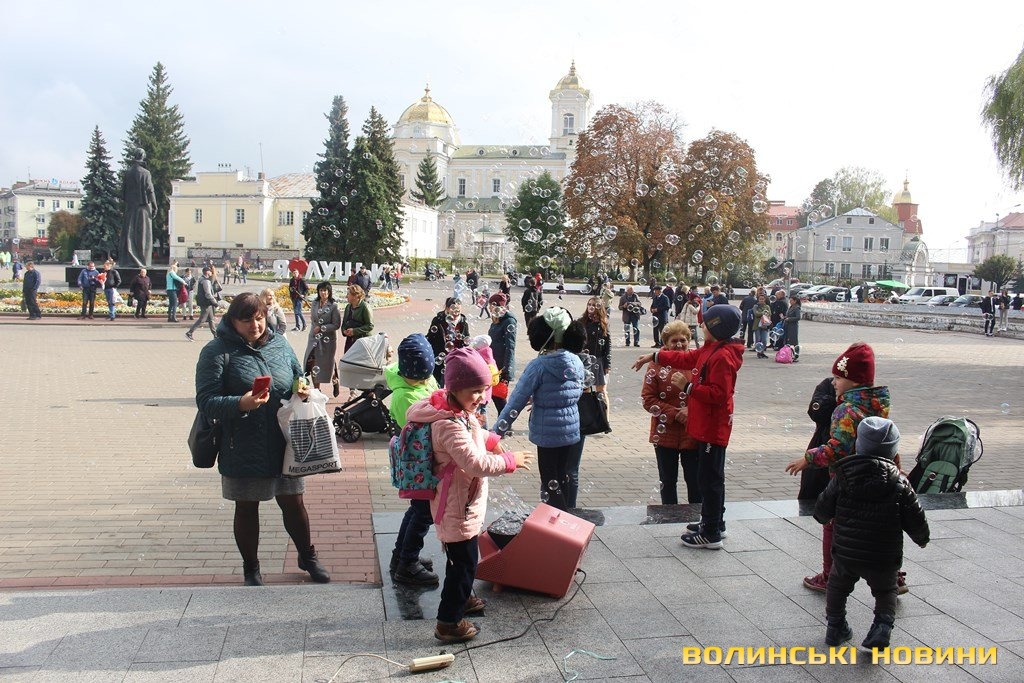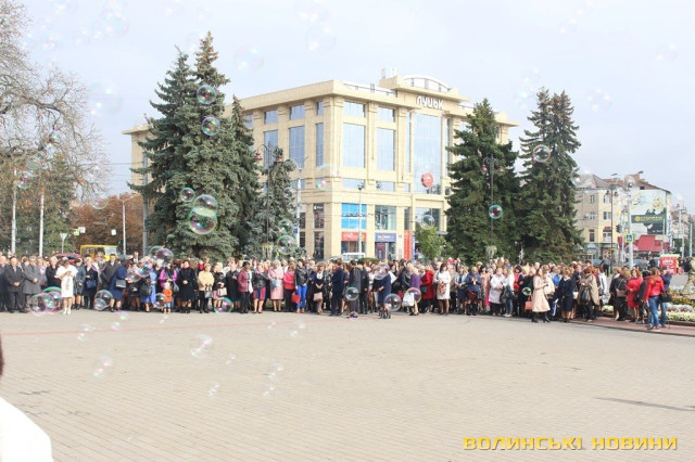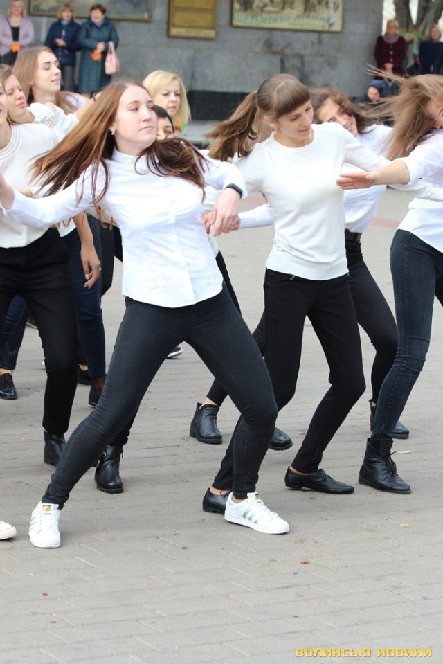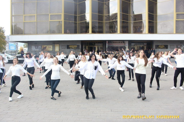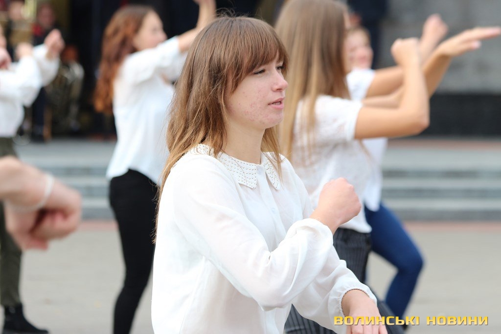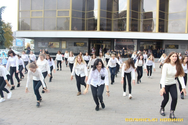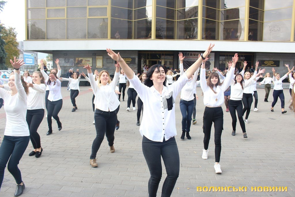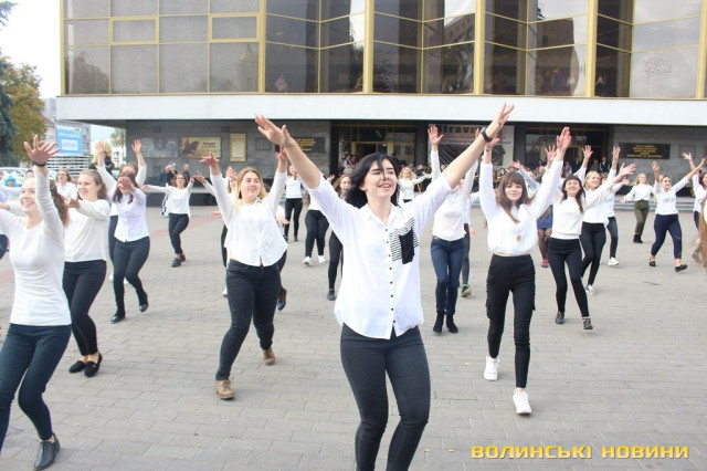 Флешмоб, у якому взяли участь понад сотня луцьких вчителів, відбувся сьогодні, 4 жовтня, напередодні професійного свята педагогів на Театральному майдані обласного центру.