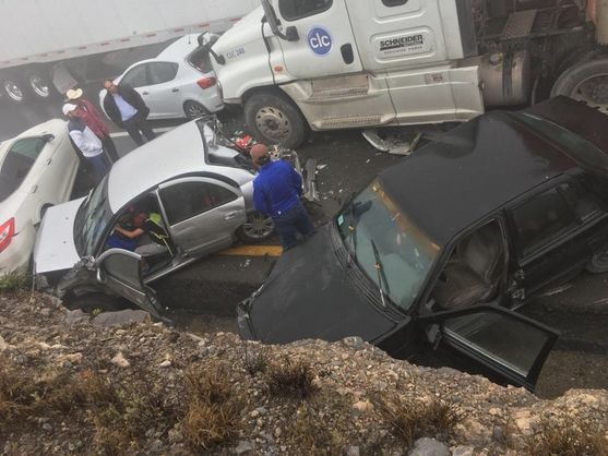 En La Carretera Saltillo-Monterrey ocurrió una carambola de aprox 150 vehículos por la densa neblina que cubre la zona. pic.twitter.com/TfvEZEvb3W