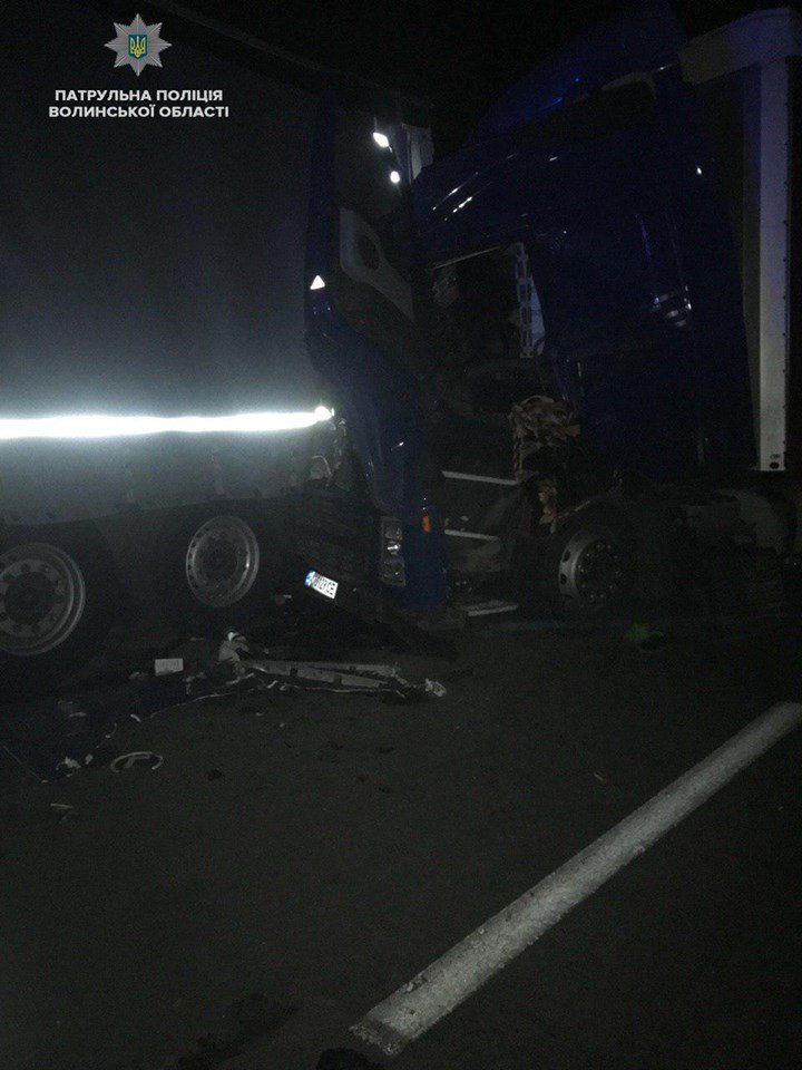 Водій Volvo з причепом не врахував дорожньої обстановки й безпечного бокового інтервалу та здійснив наїзд на припаркований Renault premium з причепом. Транспортні засоби отримали механічні пошкодження з матеріальними збитками. Про це інформує прес-служба патрульної поліції Волині.