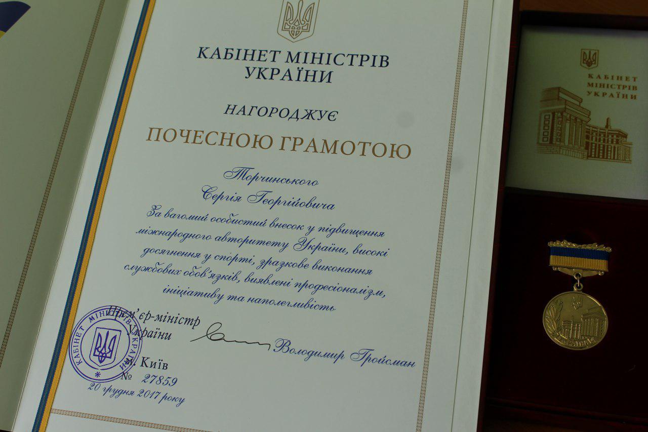 Волинського інспектора патрульної поліції, тріумфатора «Ігор Нескорених» Сергія Торчинського нагороджено почесною грамотою Кабінету Міністрів.