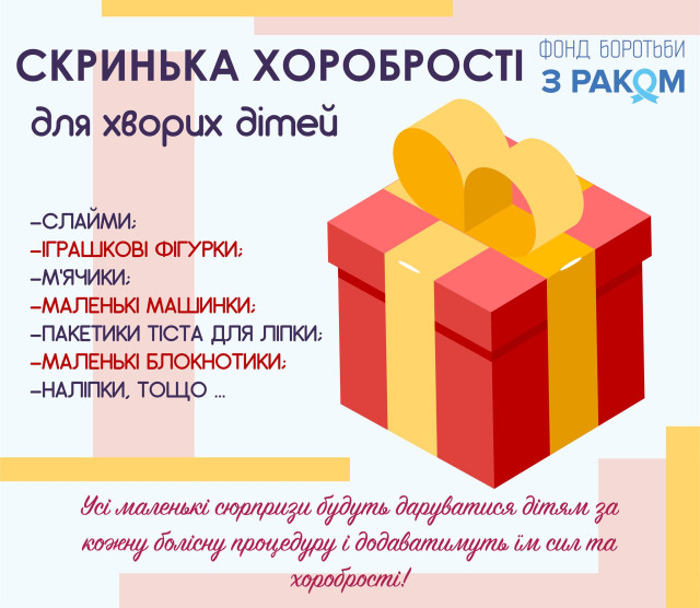 Давайте почнемо зі «Скриньки хоробрості». Ви завжди допомагали наповнювати її для діток хворих на рак і це було прекрасно, скільки всього класного ви передавали!" - йдеться у дописі.