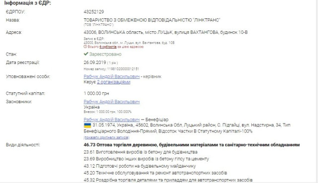 Підприємець є власником ТОВ «Ліктранс», яке розташоване на вулиці Вахтангова, 10. І там же зареєстрована ГО «Розвиток Мікрорайонів Міста».Приміщення за згаданою адресою сьогодні перебуває у власності Андрія Рабчука, проте, як з’ясувалося, привласнив він його незаконним методом за фіктивними документами.«Експерти» – з усіх кутків України