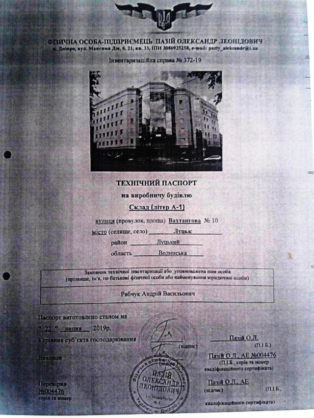 Підстава – не договір купівлі-продажу чи дарування, а лише акт технічного огляду. Тоді на початку серпня ще одним актом огляду цю будівлю розділили на три окремі приміщення: площею 84,6 квадратів, 130 квадратів і ті самі 163 квадрати. Тобто замість поділити приміщення, площі помножили.Як таке можливо, вирішили запитати у підприємця, який проводив огляд і підписував технічний паспорт.ФОП Пазій Олександр Леонідович проживає і працює у Дніпрі. Спершу в телефонній розмові пообіцяв вивчити документи і все пояснити.