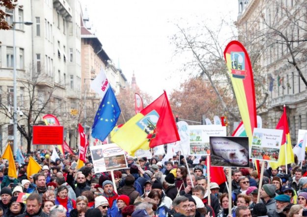 У суботу в Будапешті тисячі угорців протестували проти запропонованого нового закону про працю, який критики називають «рабським».