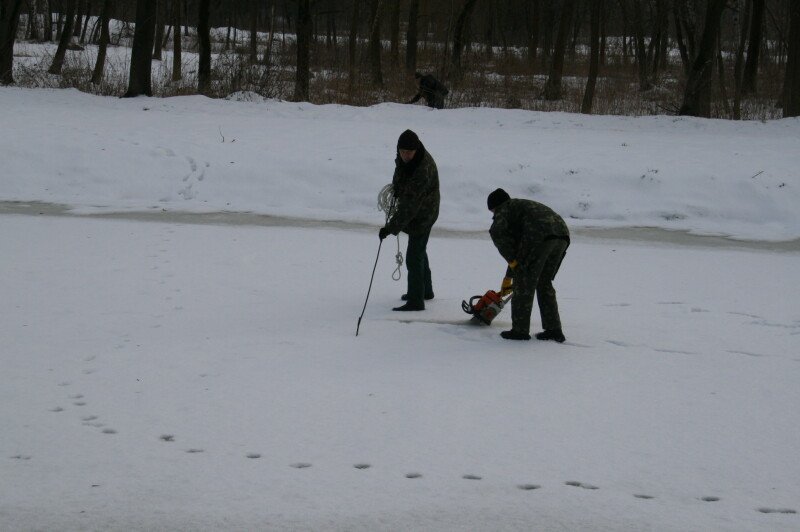Працівниками КП «Парки та сквери м. Луцька» з 17 січня проводяться роботи з влаштування ополонок, які вкриваються гіллям ялини для попередження від замерзання, а сьогодні, 24 січня, окрім влаштування ополонок збагачували воду киснем двома компресорами.