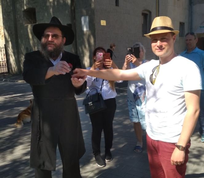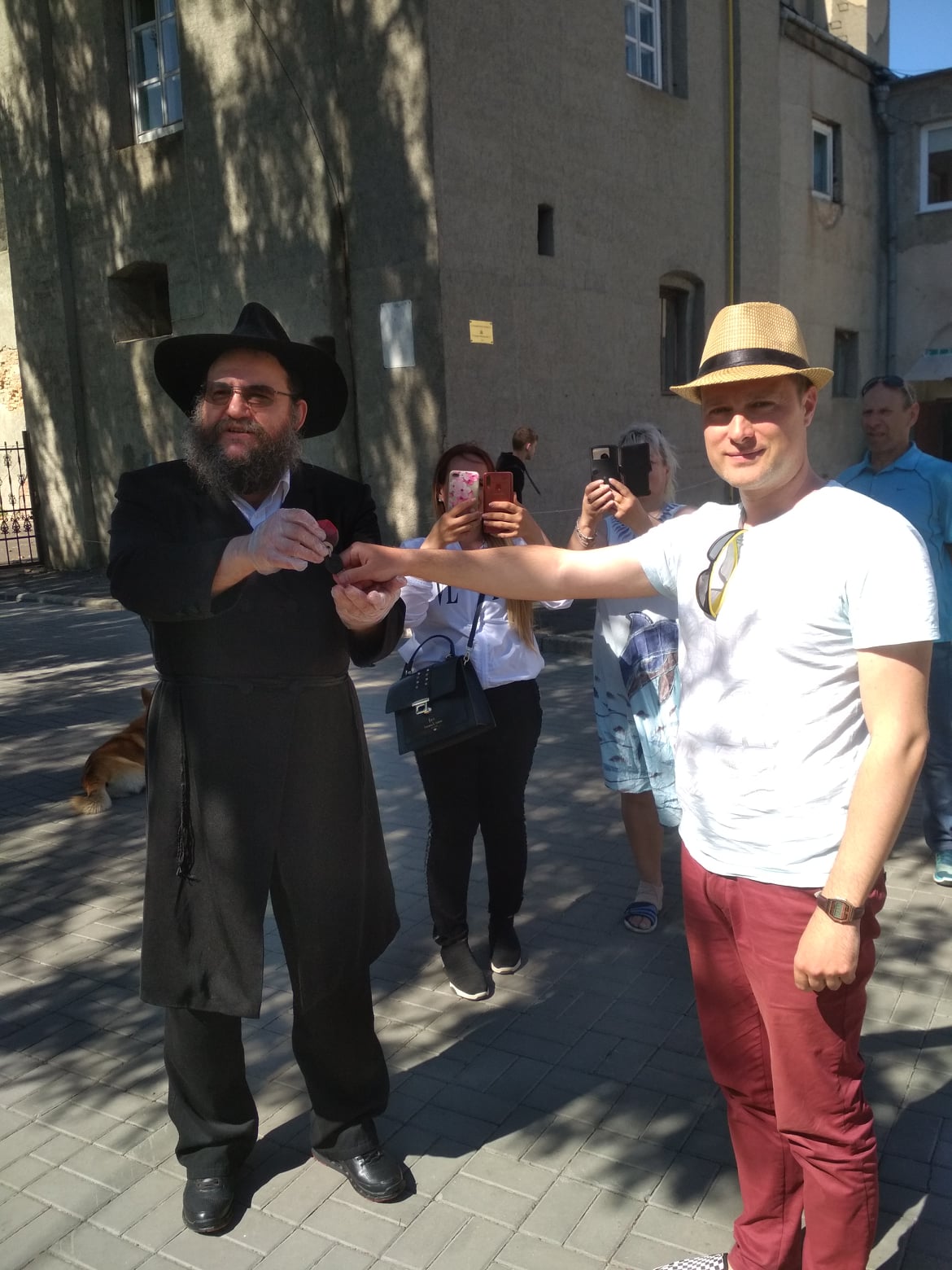 Начальник відділу охорони культурної спадщини департаменту культури Луцької міської ради, краєзнавець Олександр Котис урочисто передав ключі іудейській громаді від Великої синагоги 1629 року.