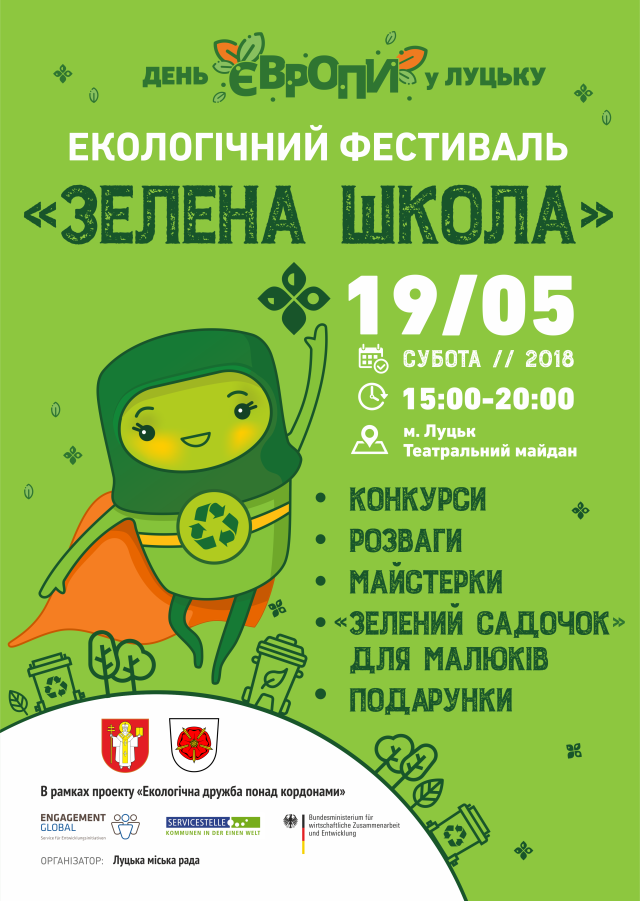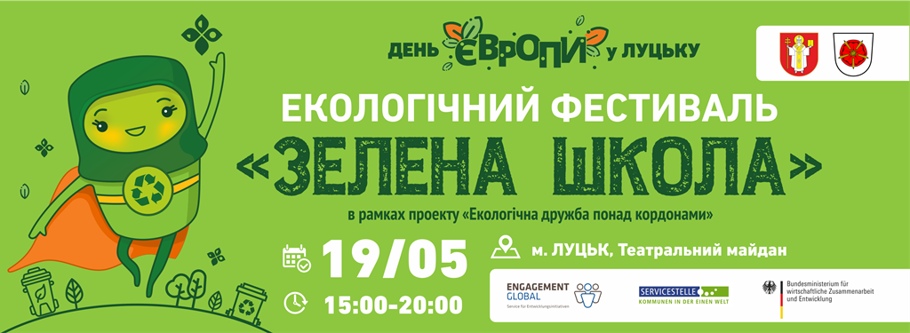 19 травня на Театральному майдані міста Луцька відбудеться Екологічний фестиваль “Зелена школа” з яскравими конкурсами, виставами, майстер-класами на екологічну тематику. Активні учасники отримають подарунки.