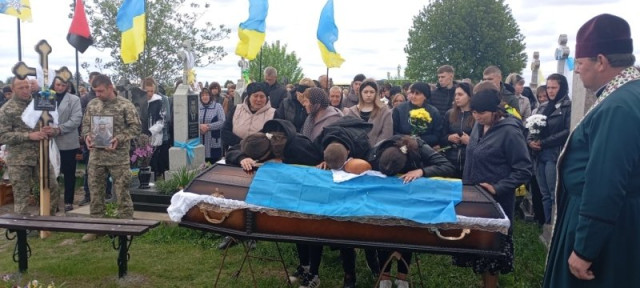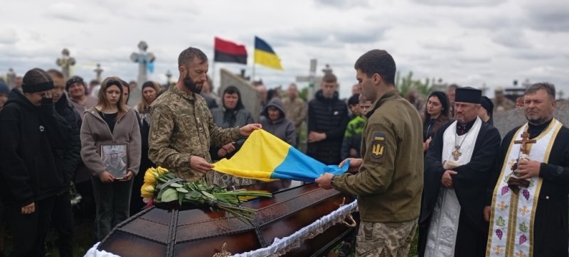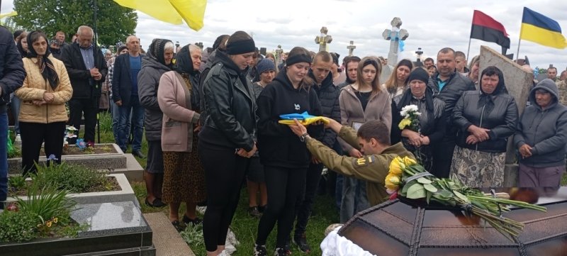 Востаннє нашому земляку віддали військові почесті. Рідним воїна вручили Державний Прапор України, який почесна варта зняла з домовини. На честь солдата гучно пролунав трикратний стрілецький салют...