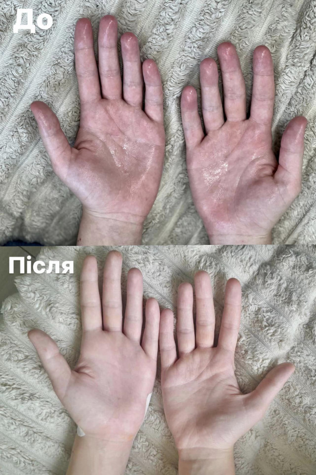 Олександра з трьох років страждала від гіпергідрозу – надмірного потовиділення кисть рук та стоп. Процес виділення поту із потових залоз був настільки сильний, що робити звичайні побутові справи дівчинці було дуже складно.
