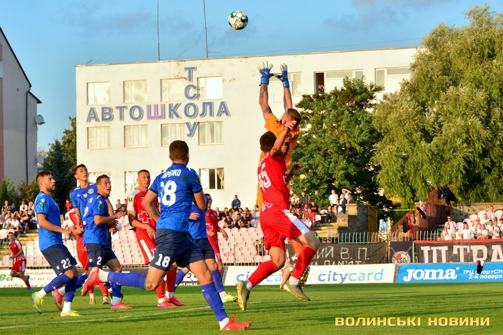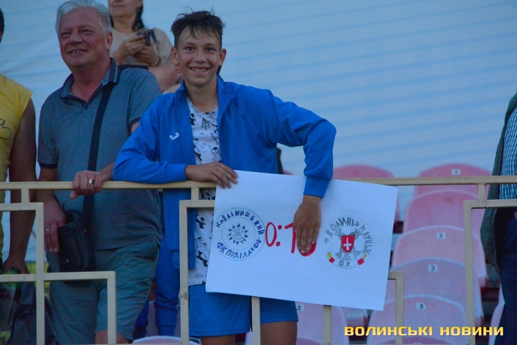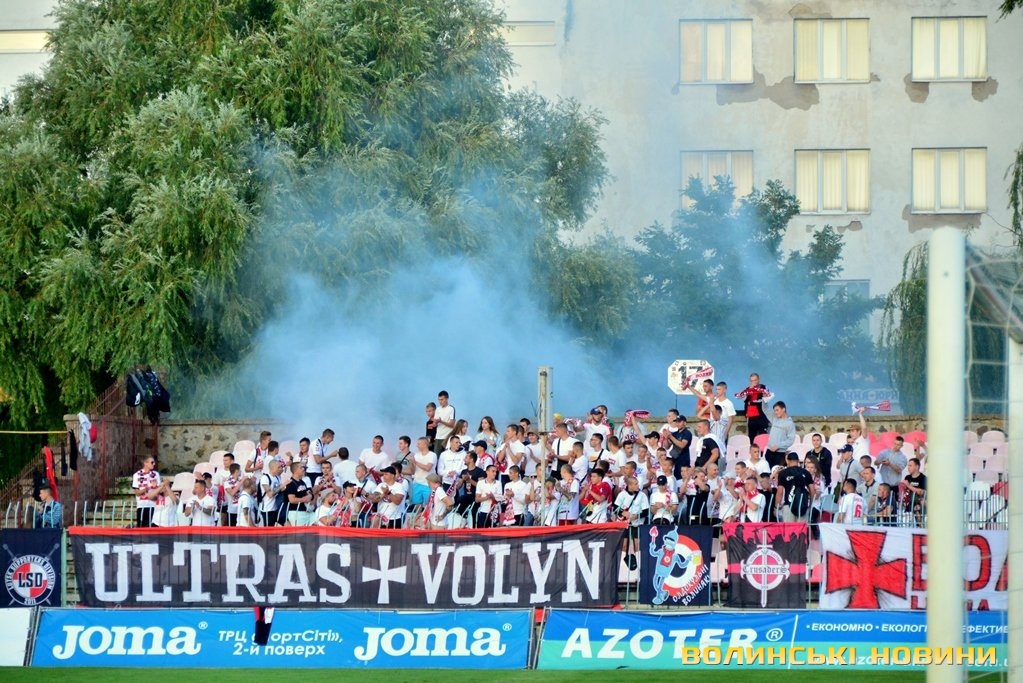 У другому турі «Волині» потрібно було доводити, що результат попереднього матчу – не випадковість. У суперниках – хмельницьке «Поділля», з яким більшість гравців теперішнього складу «Волині» знайомі за виступами у Другій лізі минулого сезону. Днями нашу команду сколихнула жахлива новина – з життя пішов легендарний нападник Володимир Дикий, тож на матч «хрестоносці» вийшли з чорними стрічками на лівій руці.Перед матчем фани «Волині» провели традиційний марш на старті сезону, задимівши увесь центр міста та продемонструвавши підтримку команді. А один із молодих вболівальників приніс плакат, яким вангував перемогу «Волині» з надоптимістичним рахунком – 10:0.Традиційне підняття прапору капітанами команд у першому домашньому матчі сезону, Гімн України, і арбітр дав стартовий свисток. Під час цього матчу волиняни обрали захисну тактику, віддавши м’яч супернику та зробивши ставку на контратаки і максимальну самовіддачу в кожному епізоді.Попри те, що гості більше володіли м’ячем, до моментів справа у них не доходила. Натомість свій шанс у в’язкій грі отримала «Волинь»: Ляшенку дещиці не вистачило, щоб дотягнутися до м’яча під час виходу віч-на-віч з голкіпером.