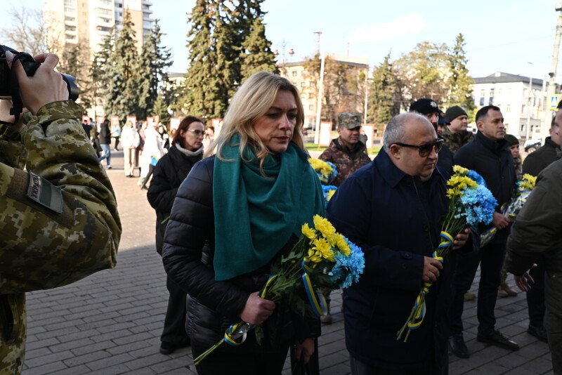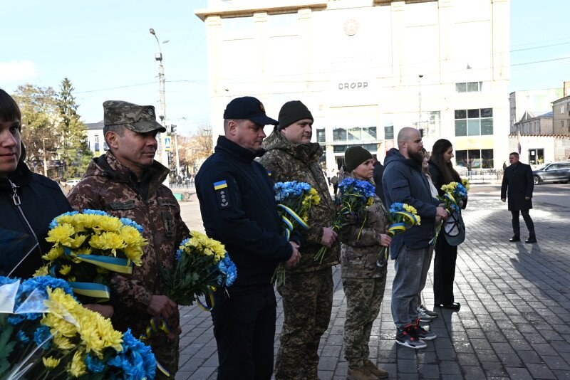 До церемонії долучилися міський голова Ігор Поліщук, керівники області, підрозділів Національної поліції, Національної гвардії, ДСНС, закладів вищої освіти та небайдужі жителі громади. Присутні також вшанували пам’ять захисників хвилиною мовчання.