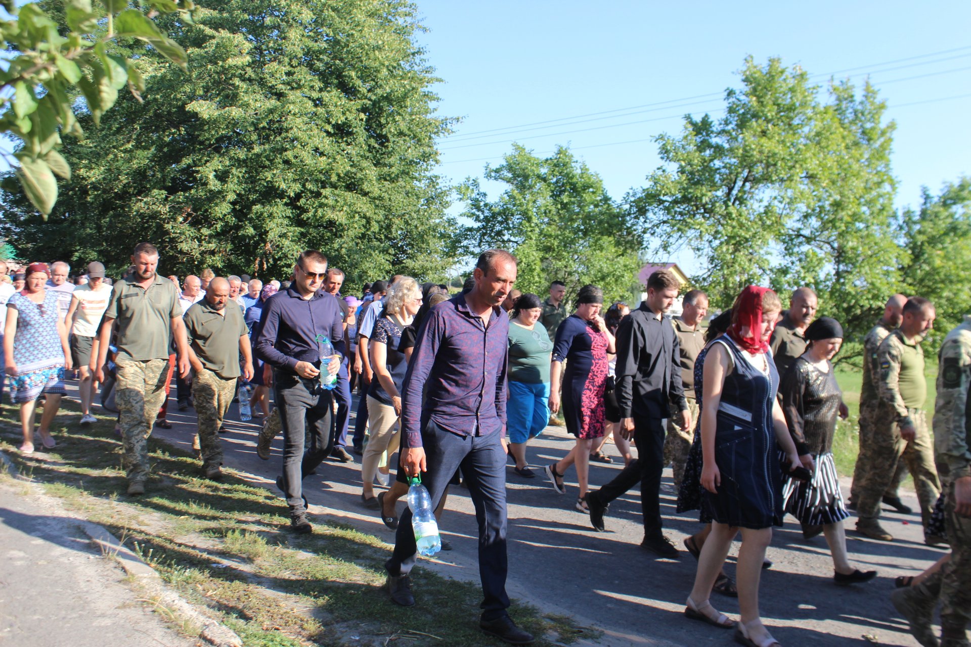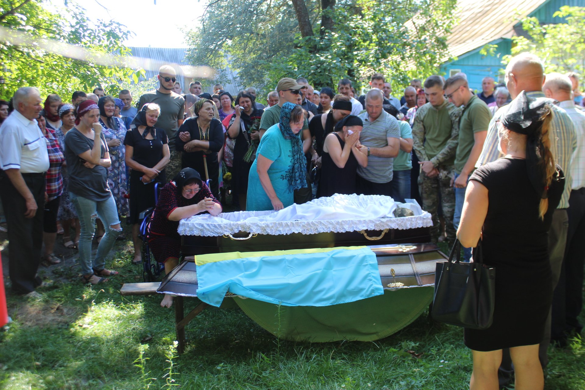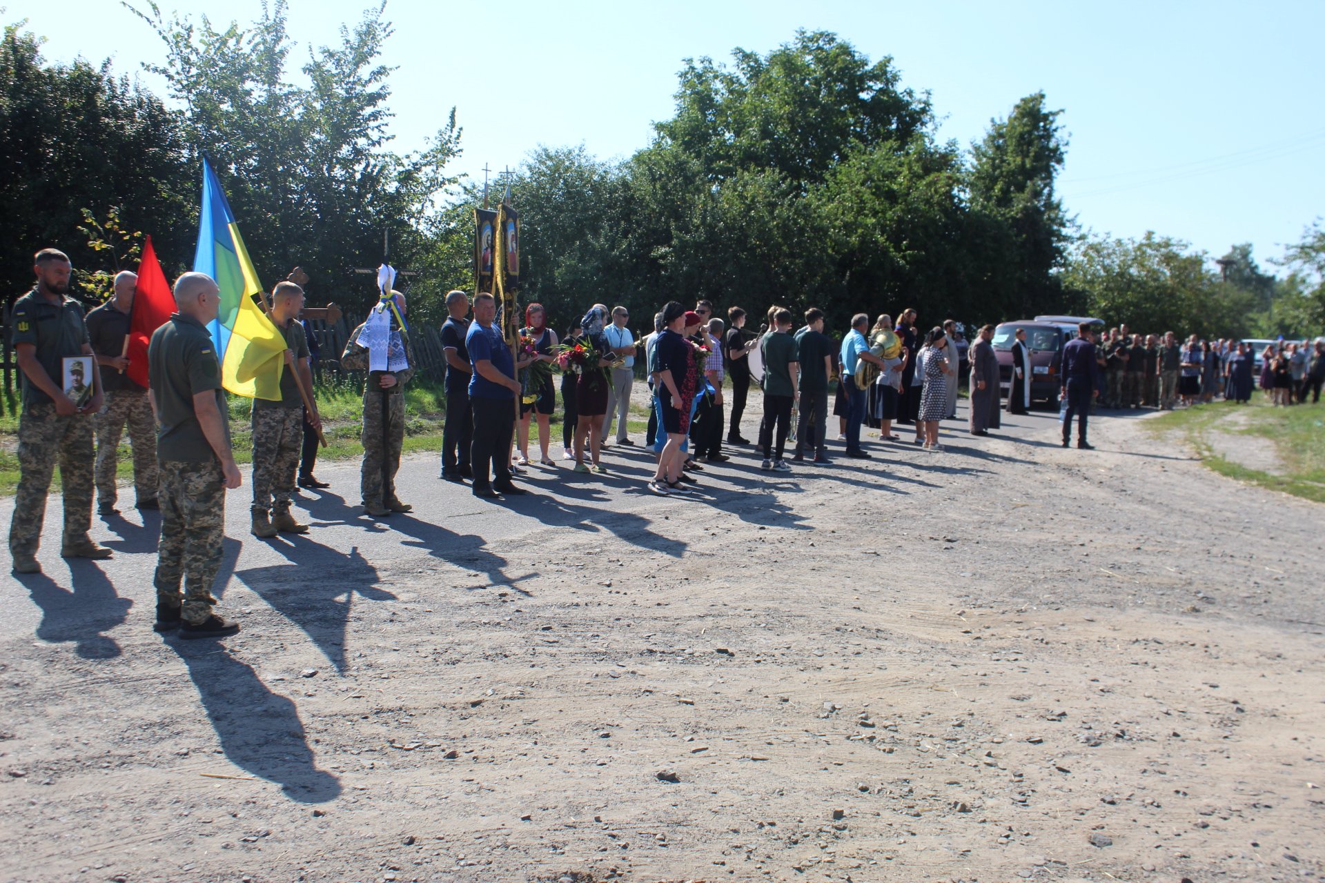 Сьогодні мешканці громади стоячи на колінах прощалася з захисником. Чин похорону звершили священики у Свято-Миколаївському храмі. Поховали бійця з усіма почестями під залпи пострілів почесної варти та звуки духового оркестру на кладовищі у Цмінах.