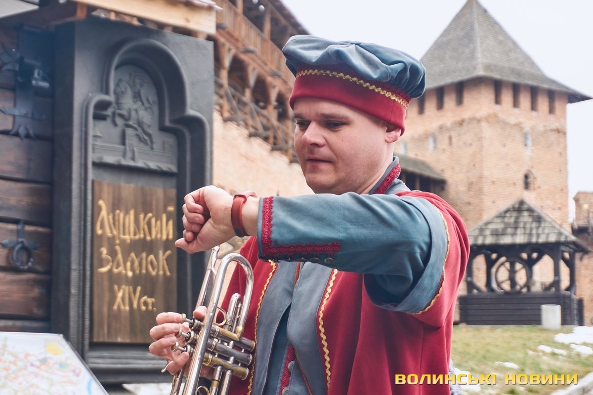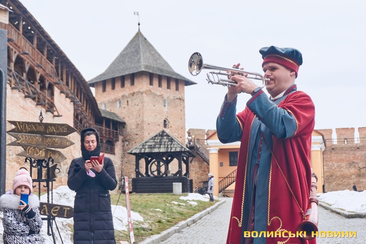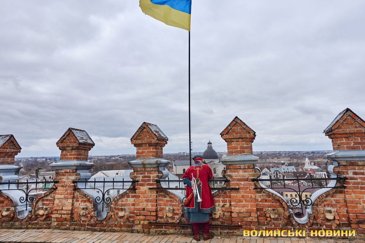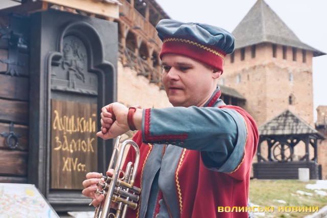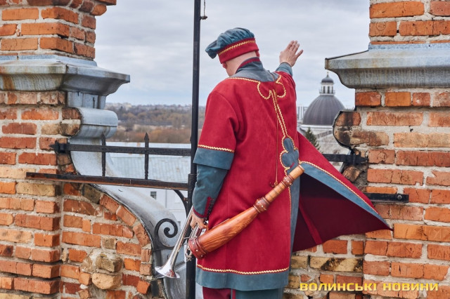 Об 11.58 ми разом із Андрієм піднімаємося на майданчик В'їзної вежі. Але перед цим доводиться подолати перешкоду, а точніше – 126. Адже саме стільки сходинок відділяють кликуна від неба. Він помітно нервує та щораз поглядає на годинник. Каже, що втоми не відчуває, лише щоразу йому перехоплює дух. «Зараз це вже ввійшло у звичку. Але все одно до відчуття того, що цієї миті є лише замок і я, годі звикнути», – зізнається Андрій Єдинак.За хвилину він підходить до огорожі, налаштовує інструмент і ось – з першими ударами дзвона до хмар летять усім відомі акорди. Кликун сурмить на чотири сторони світу, вітаючи-сповіщаючи: він на своєму посту, тож багатовікова історія Луцька триває!Олександр ДУРМАНЕНКО