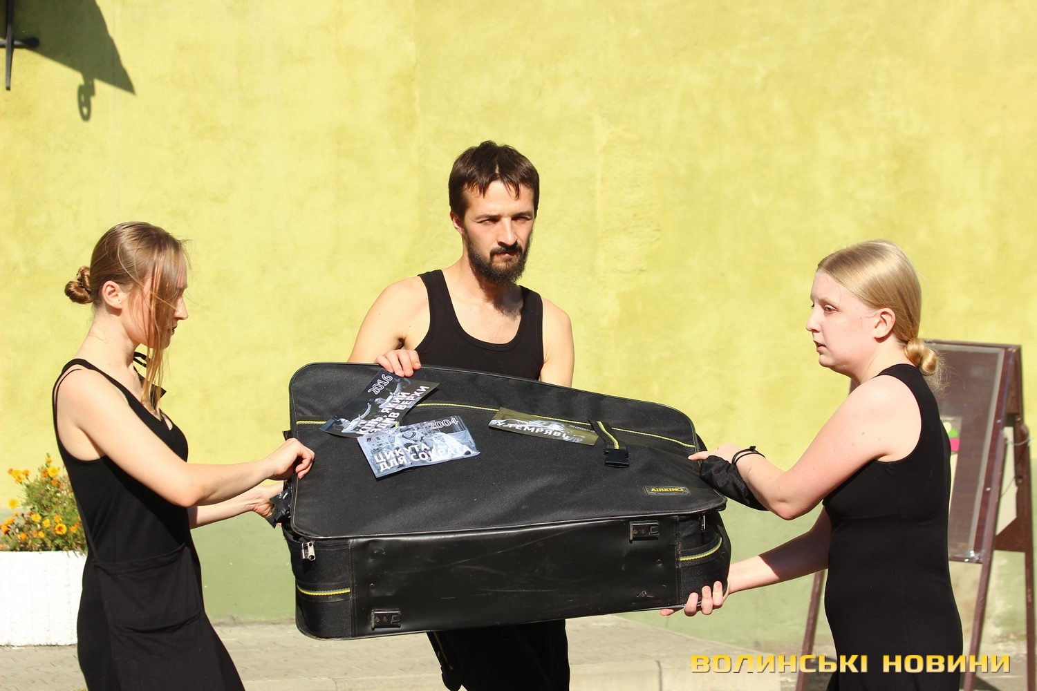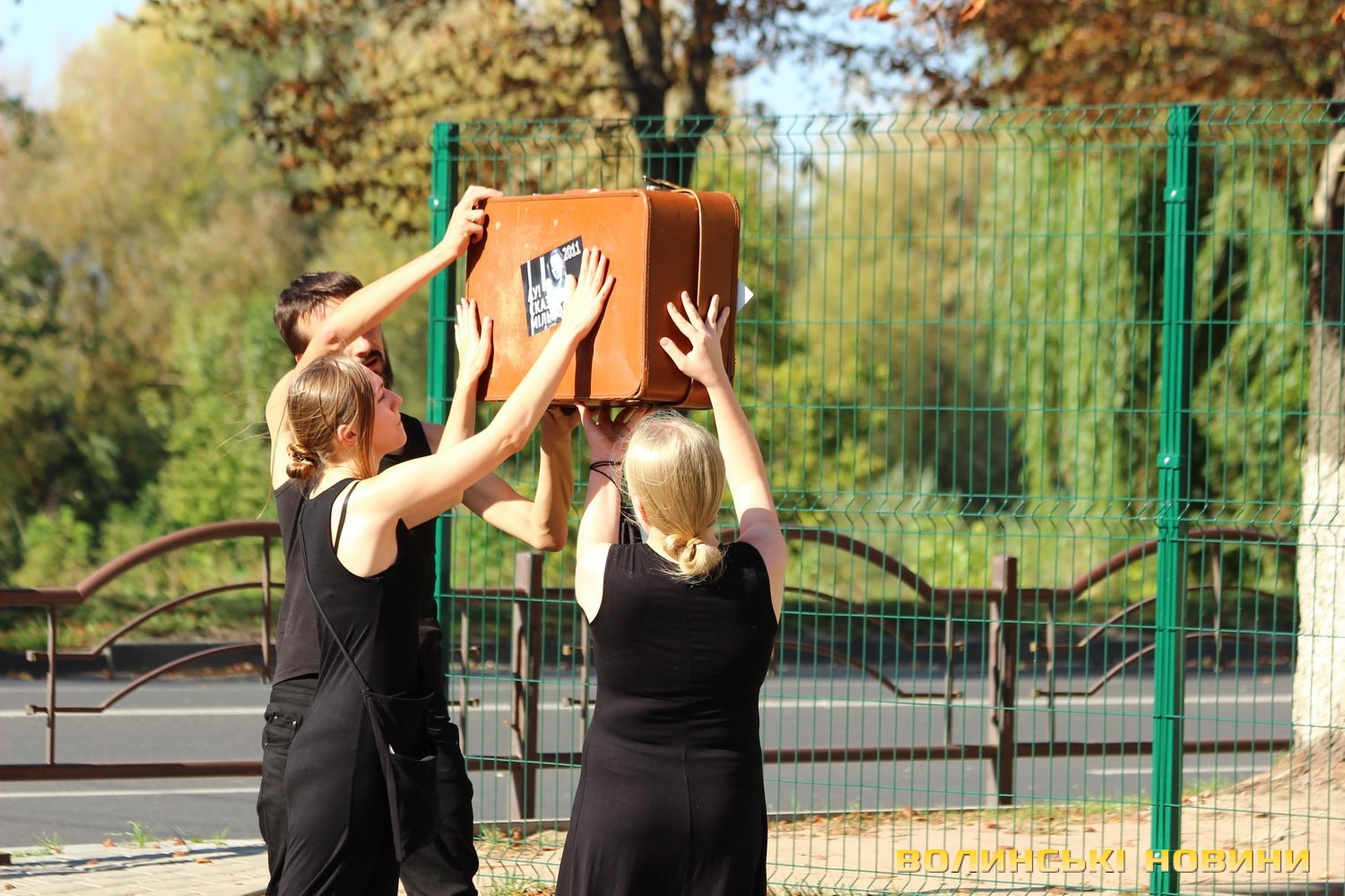Аби розпочати разом із гармидерівцями своєрідну театралізовану екскурсію, всі охочі зібралися біля Луцького районного будинку культури. Далі вирішили до річки Стир, потім через міст до вулиці Набережної та музичної школи № 1 імені Фридерика Шопена, далі до скверу біля міської ради та парку «Зоряного», що на перетині вулиць Лесі Українки та Сенаторки Левчанівської. Протягом усього маршруту провідники робили невеликі зупинки, аби представити короткі перформанси-уривки з окремих п’єс, зіграних колективом у різні роки. Щоби присутні могли краще зорієнтуватися в потоці вистав, у кожному новому пункті актори прикріплювали до своєї мандрівної валізи наклейки з постерами творів.Загалом протягом двокілометрової прогулянки всі змогли пригадати такі п’єси «Гармидера», як «Віткацій є/Віткація немає», «Портрет», «Містерія любові», «Сенат шаленців», «Дожити до…», «Кінь, який їздив верхи», «Ау! Сказане мільйонам», «У темряві», «Гра долі», «Цикута для Сократа», «9-й місячний день», «На полі крові», «На перші гулі», «Мазайло» та ін.Пунктом прибуття, своєю чергою, став парк «Зоряний», у якому було облаштовано виставку «Перетин» зі світлинами акторів театру-студії.
