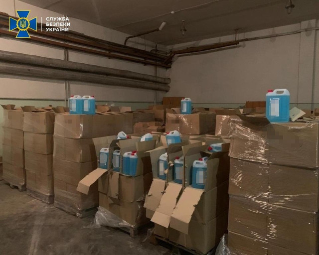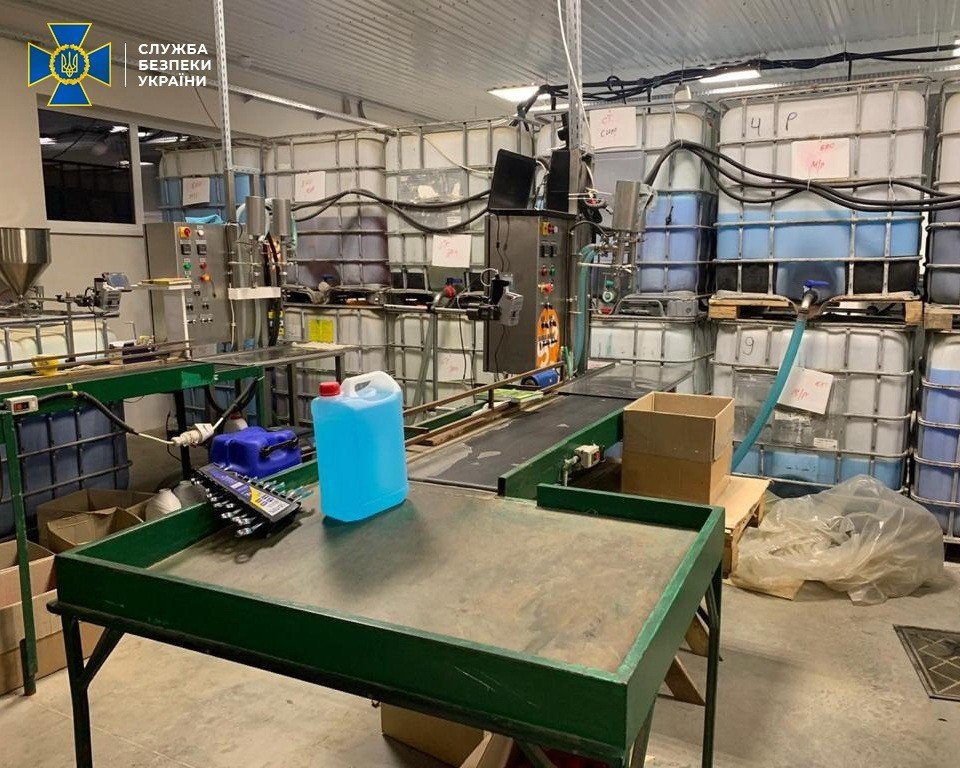 Щодня підпільний цех виготовляв до 15 тонн контрафактного антисептика на суму 1,5 млн грн. та збував його.